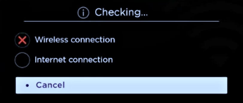 ツールがストリーミングプレーヤーとネットワーク接続をチェックしている間、待ちます。 a赤xアイコン「ワイヤレス接続」の次に、ROKUがルーターのWi-Fiネットワークとの接続を確立できないことを意味します。