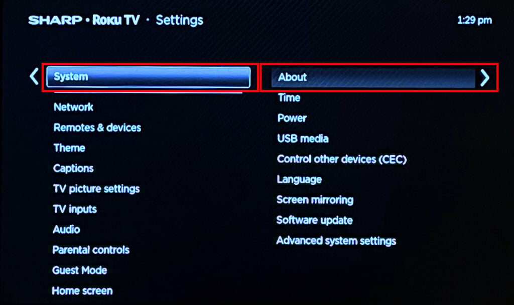 に向かいます設定>システム>についてRokuデバイスのモデルを確認します。