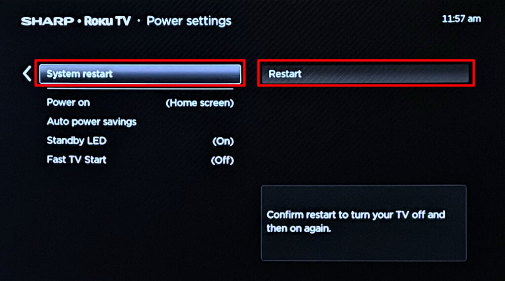 行きます設定>システム>高度なシステム設定>ネットワーク接続リセット選択します接続をリセットします。ネットワークリセットは、Roku TVまたはストリーミングプレーヤーを再起動します。