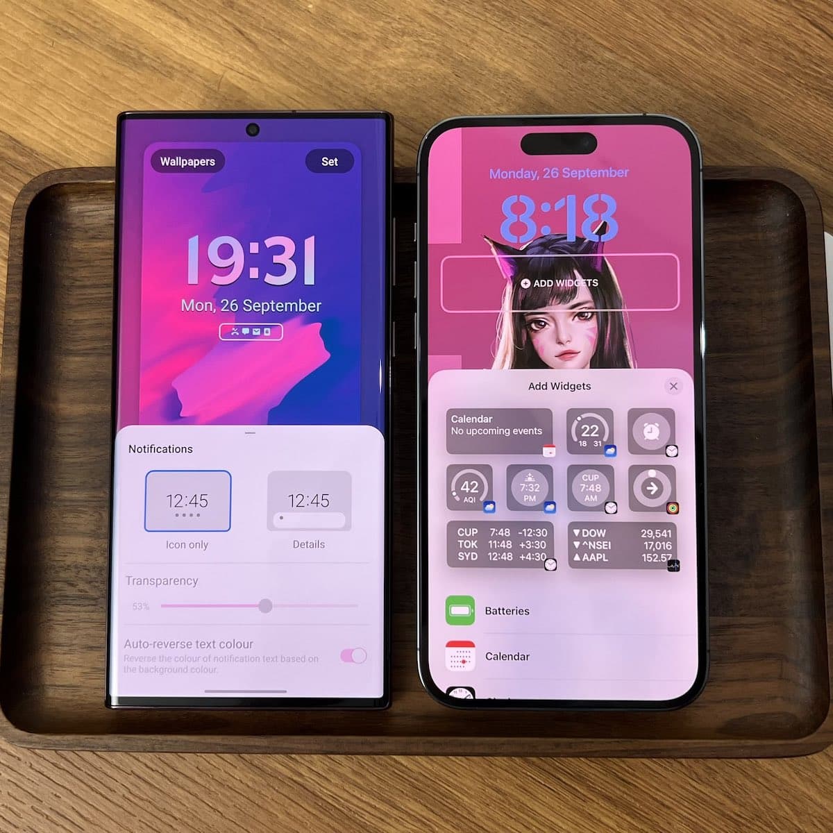 ただし、Samsungは、iOS 16のようなアプリ向けではなく通知用のウィジェットアイコンのみを提供しており、壁紙にiOS 16の深度効果もありません。