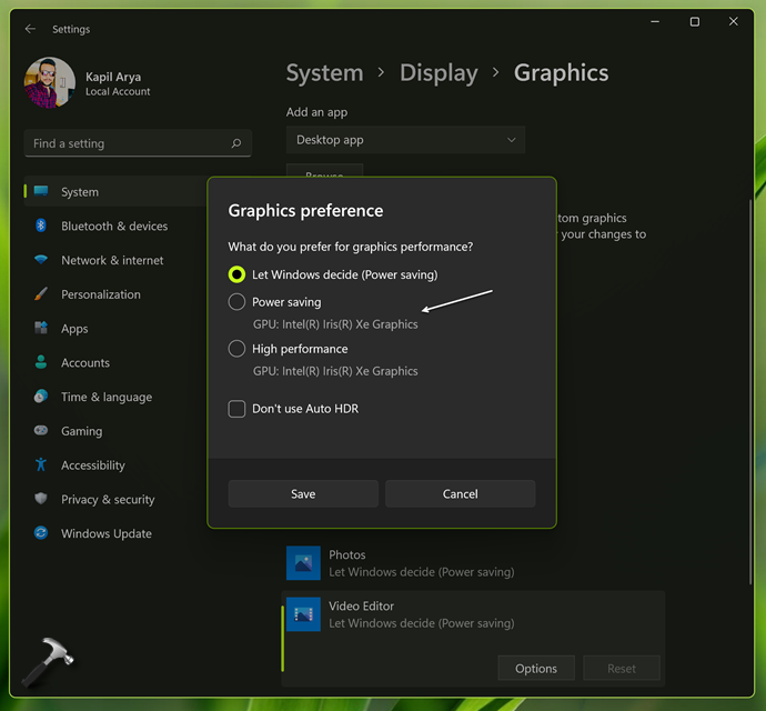 4。最後に、クリックします保存アプリのグラフィックパフォーマンスの好みを適用します。