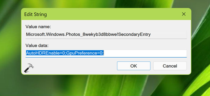 autohdrenable = 0; gpupreference = 2; (Auto HDR、高性能を使用しないでください)