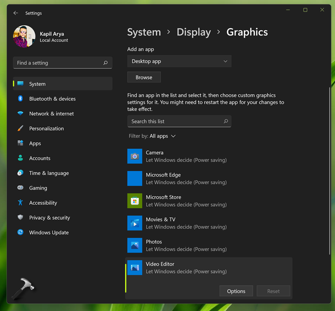 グラフィックスに関してアプリを異なる動作させたい場合は、アプリのグラフィックの好みを設定できます。 Windows 11には、選択した特定のアプリ用にそれらを構成できるように設定が利用可能です。これらの設定を使用して、複数のGPU接続が接続されている場合に備えて、希望のGPUを設定することもできます。 MicrosoftストアアプリとデスクトップアプリのGPUを個別に指定できます。