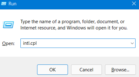 1。開ける走るを押すことによってWindows + rキーボードにタブが一緒になります。開いたら、入力しますintl.cpl[実行]ダイアログボックスでヒットします入力オープニング用地域設定。