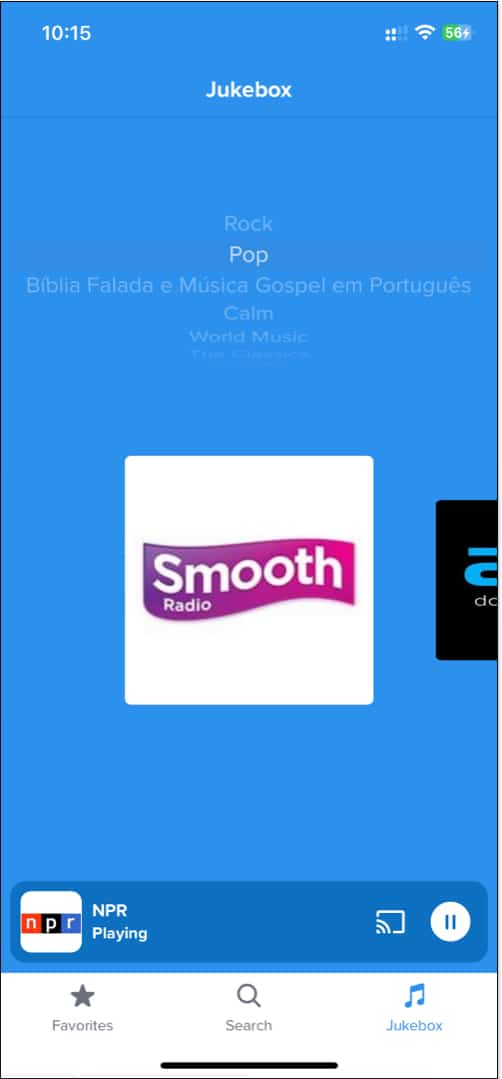 多くのラジオ局を聴くことはできますが、音楽を聴きたい場合はジュークボックス機能をチェックできます。ポップ、ロック、カントリー、ラテン語などのさまざまなジャンルが利用可能です。ジャンルを選択したら、このジャンルで利用できるさまざまなチャネルから選択できます。また、オーディオの品質は、ラジオジュークボックスに適しています。さらに、このアプリを使用してiPhoneからGoogle TV、Chromecast、またはキャストをサポートするデバイスにキャストできます。