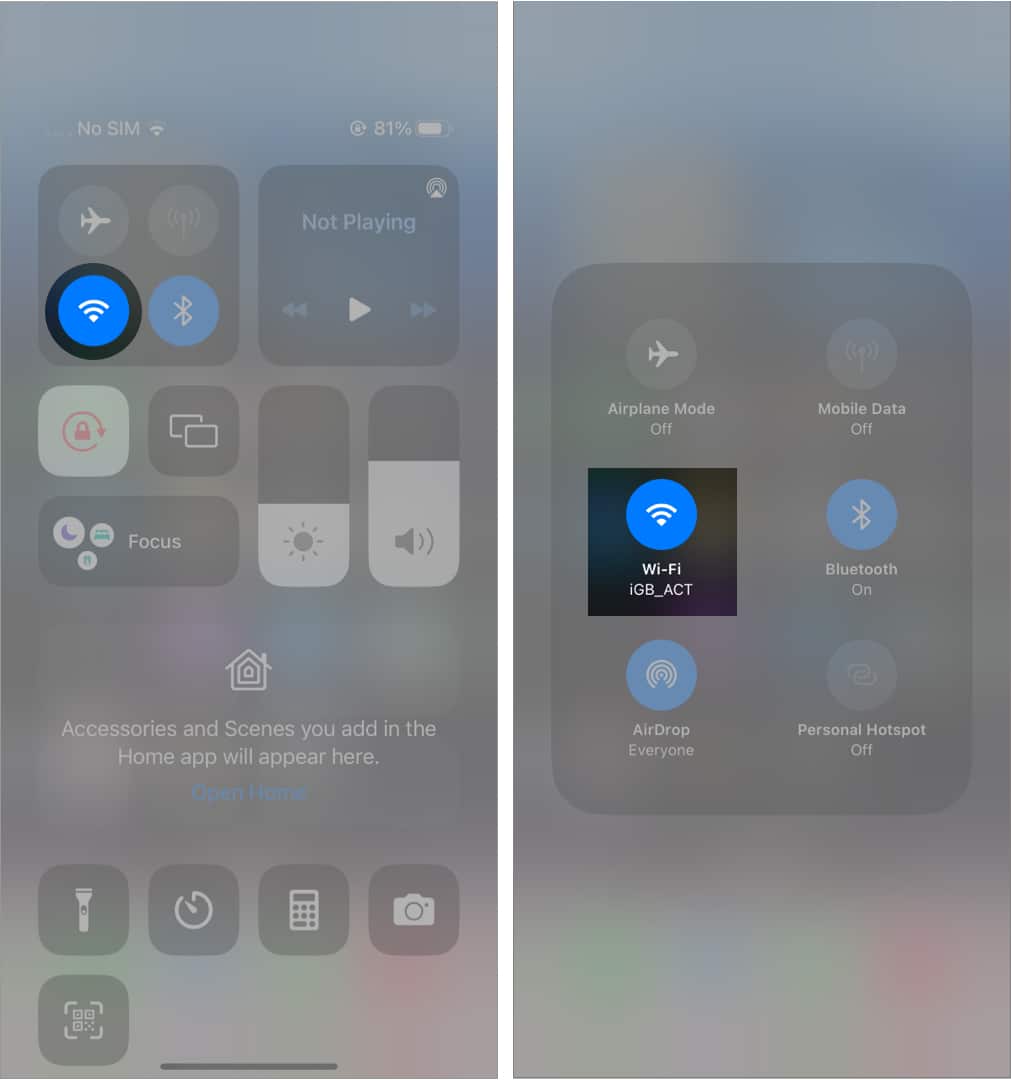 まず、安定したインターネット接続があるかどうかを確認します。そうするために、単に開くコントロールセンター→タップして保持しますネットワークトグル→どちらかを選択しますモバイルデータまたはWi-Fi。