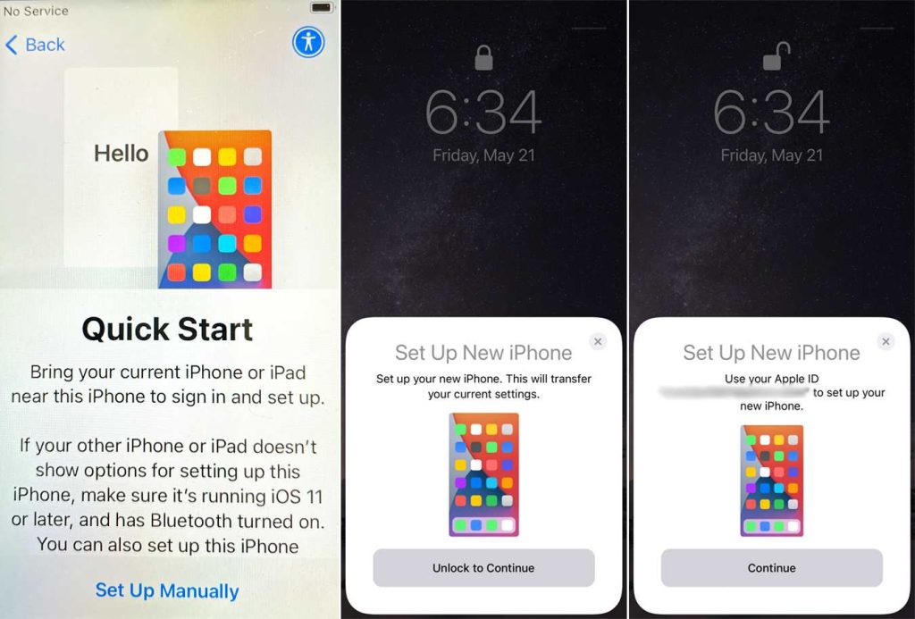 5.古いiPhoneにメッセージが表示され、Apple IDを使用して新しいiPhoneをセットアップする必要があることを確認します。パスワードを入力して、Apple IDを確認します。