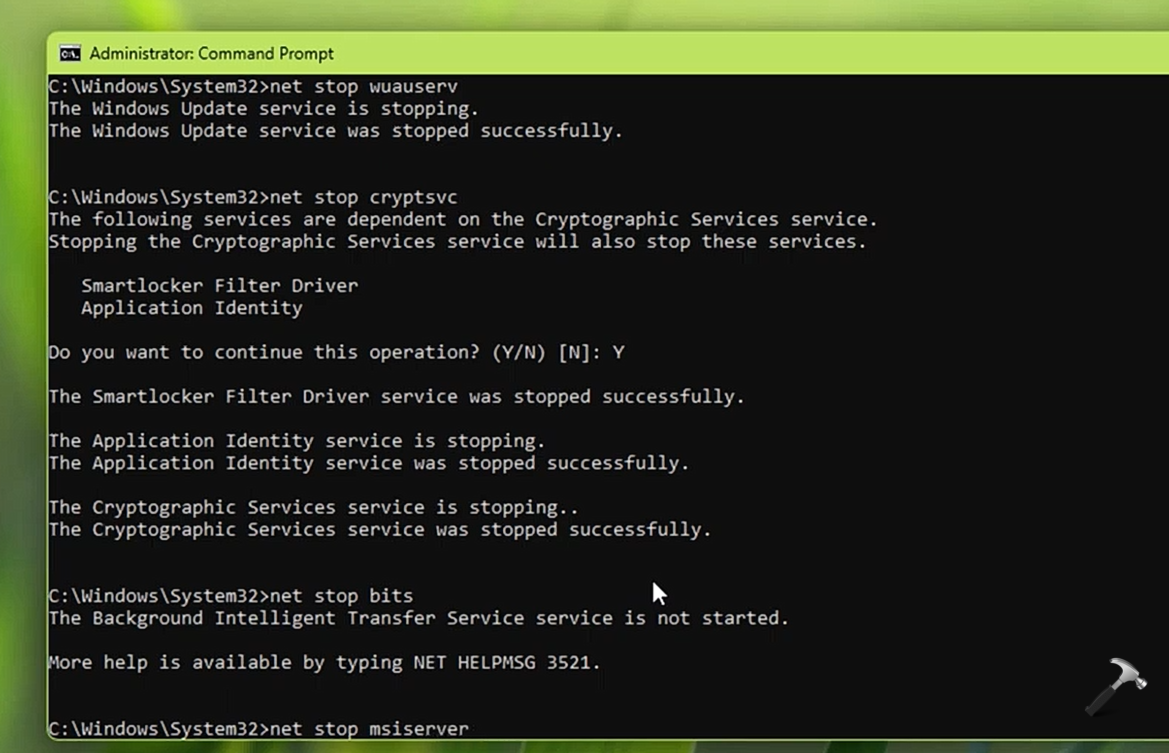 net stop msiserver