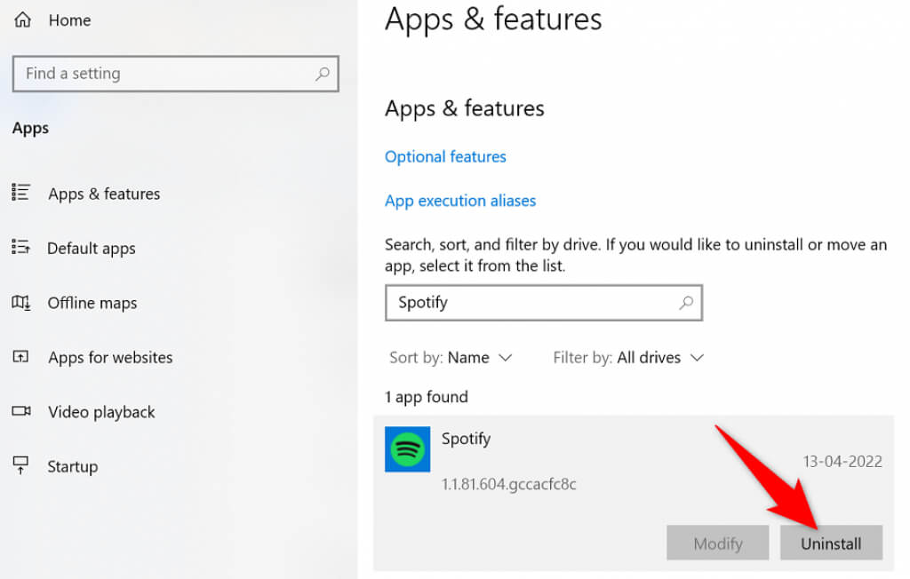 - 選ぶSpotifyアプリリストで選択しますアンインストール。