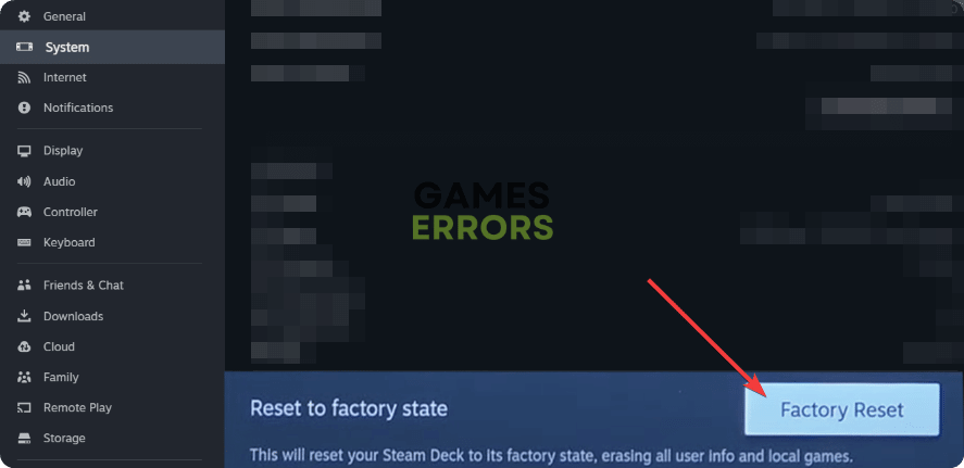 問題がまだ続く場合は、このデバイスのリセットを検討できます。パーソナライズされたファイルやゲームを失う可能性があります。しかし、これは、スチームデッキに問題が発生していないキーボードのトラブルシューティングの良い方法です。それを行うには、次の手順に従ってください。