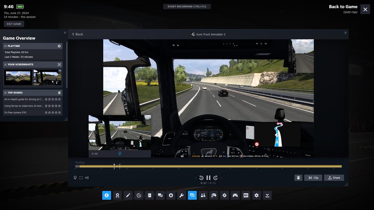 Steamゲームの録音には、クリップボタンをクリックすると、組み込みのビデオエディターが付属しています。録音はフルスクリーン、トグルミュートで表示できます。ビデオの方向を回転させるオプションとともに、ビデオを巻き戻すか、早送りするボタンが10秒です。タイムラインの特定の場所にマーカーを追加して、ビデオをトリミングできます。編集が完了したら、保存/共有ボタンを押してください。 Steamでは、タイムラインの重要な場所にマーカーを追加することもできます。マーカーも自動的に追加され、Steamの成果が得られます。