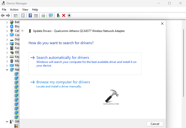 ステップ3-さらに、ドライバーの更新ウィンドウで、ドライバーの検索を自動的に押します。