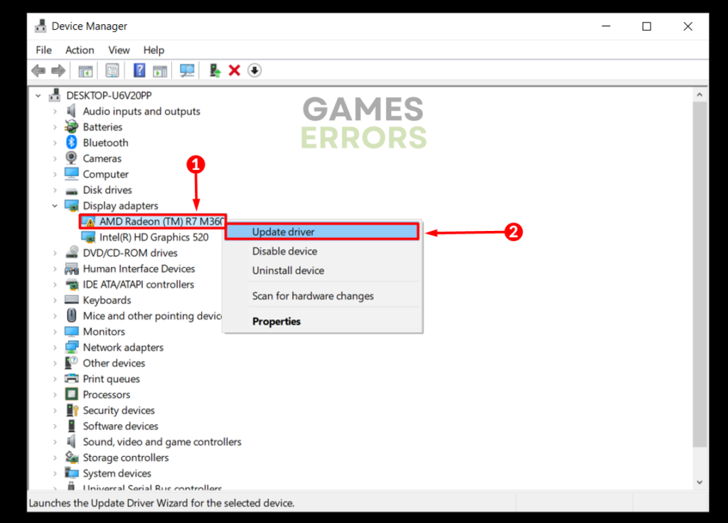 1. グラフィックドライバーを右クリックして選択しますドライバーを更新しますオプション。