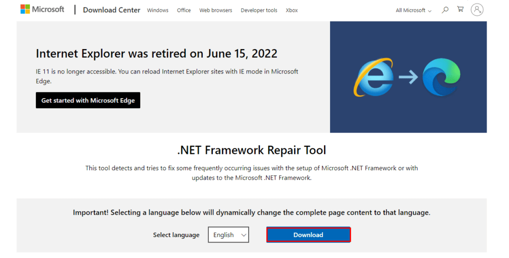 このエラーのもう1つの潜在的なトリガーは、.NETフレームワーク内の問題、特に4.5.2、4.6、4.6.1などのバージョンです。 Microsoftは、これらの問題に対処するために特に.NETフレームワーク修理ツールを作成しました。このツールをダウンロードして実行して、.NETフレームワークの自動スキャンと修復を実行できます。
