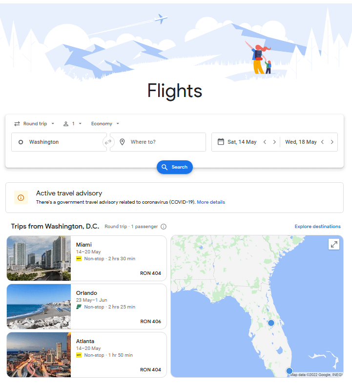 土壇場のフライトを見つけるための便利なフィルターを備えたシンプルでクリーンな検索エンジンが必要な場合は、Googleフライトが探しているものかもしれません。マップビューを使用して、世界中の価格を確認してください。これは、目的地についてあまり気にしない柔軟な旅行者に特に役立ちます。