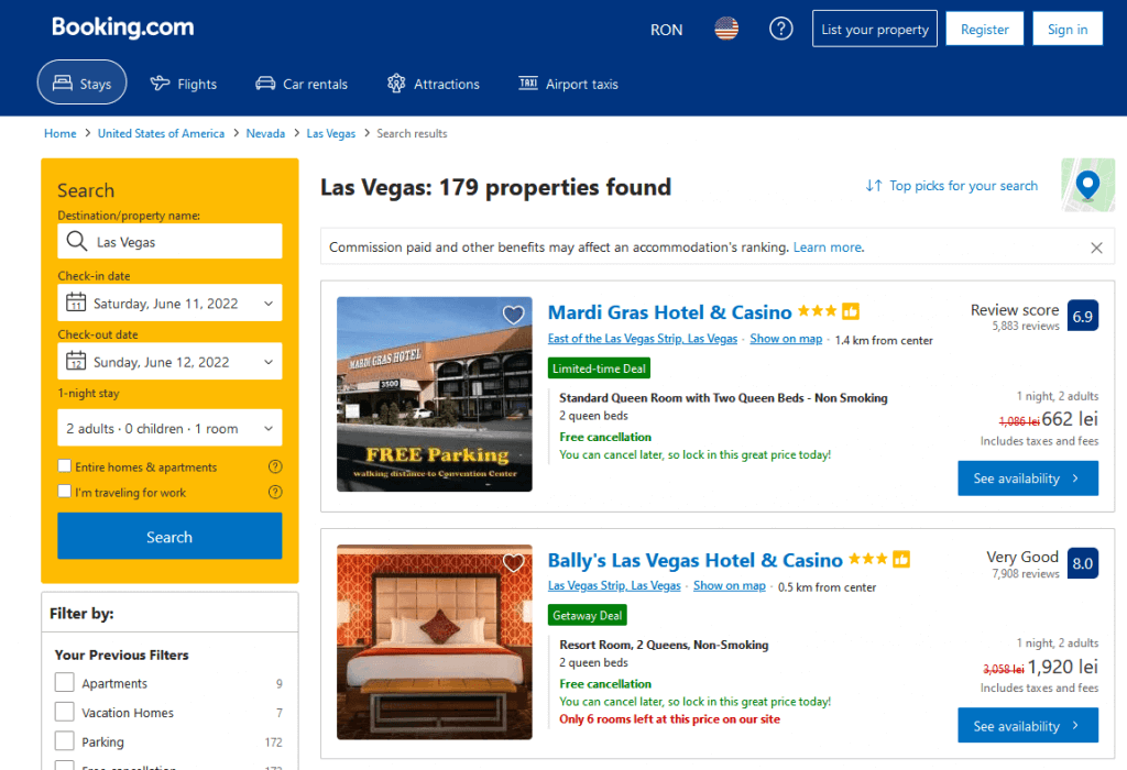 おそらくすべての宿泊予約サイトの中で最高のBooking.comは、多くのフィルターで優れた検索エクスペリエンスを提供し、次の休暇スポットを絞り込むことができます。しかし、Booking.comはホテルだけに限定されません。また、アパート、ヴィラ全体、および割引価格で非常にユニークなプロパティを選択するオプションも提供します。