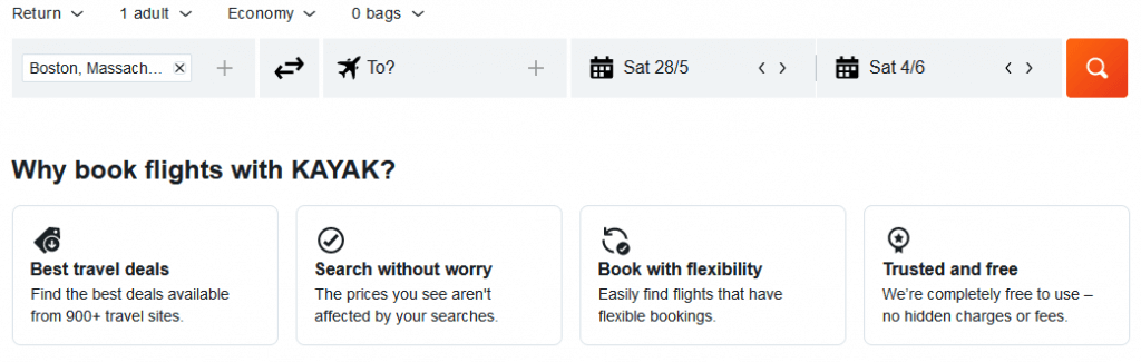 Kayakは、フライトを見つけることができる検索エンジンですが、Kayakで予約することはありません。検索エンジンは予約の料金を請求せず、心配する必要がある隠された料金はありません。カヤックが提供しなければならない多くのフィルターを使用して、正確な基準に合わせて検索を絞り込むことができます。
