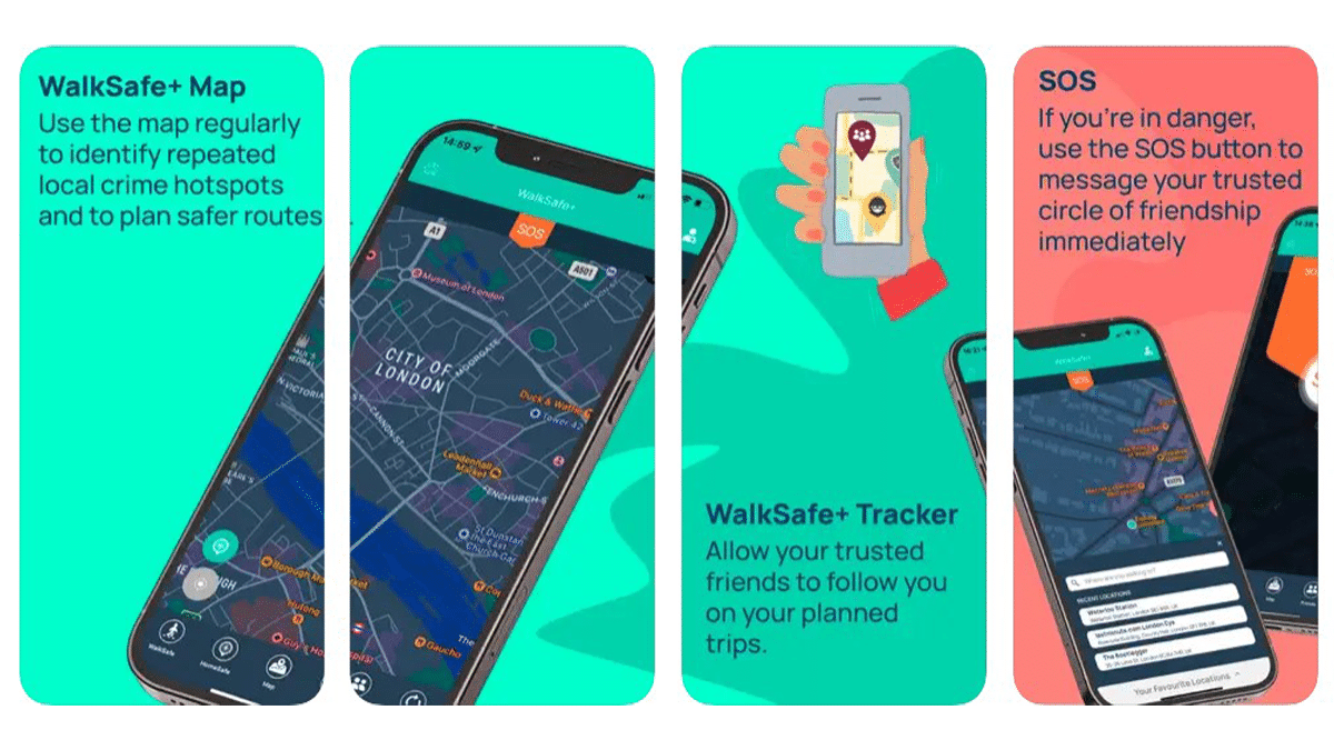 Walksafe+では、ユーザーが自分の場所を共有できる信頼できる友人のサークルと、緊急時にサークルのすべての友人に警告するSOSボタン機能を作成できます。