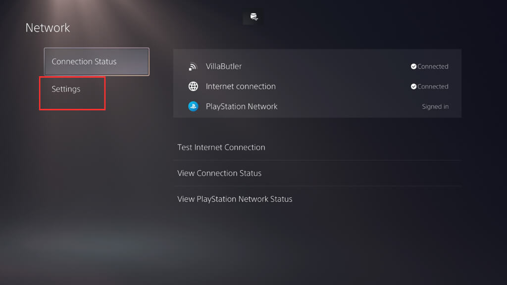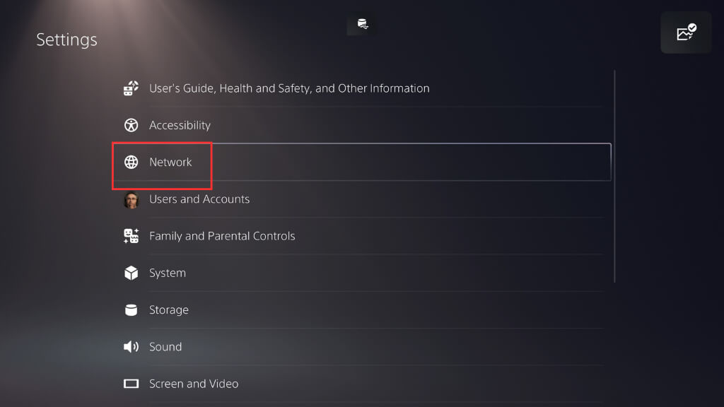 - PS5のホーム画面から、選択します設定アイコン。