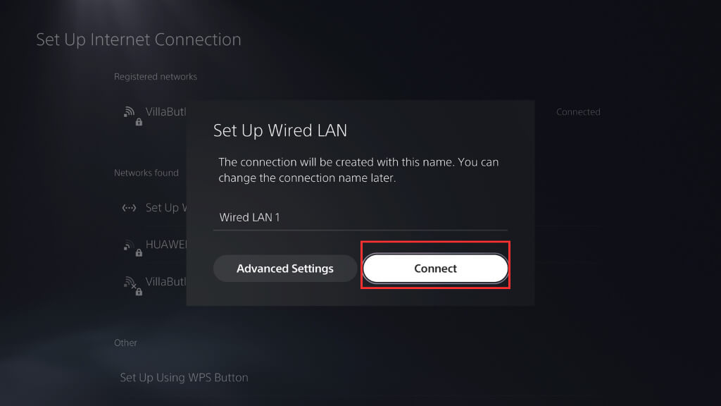 - 選ぶ有線LANをセットアップします(これはスクリーンショットできません)。