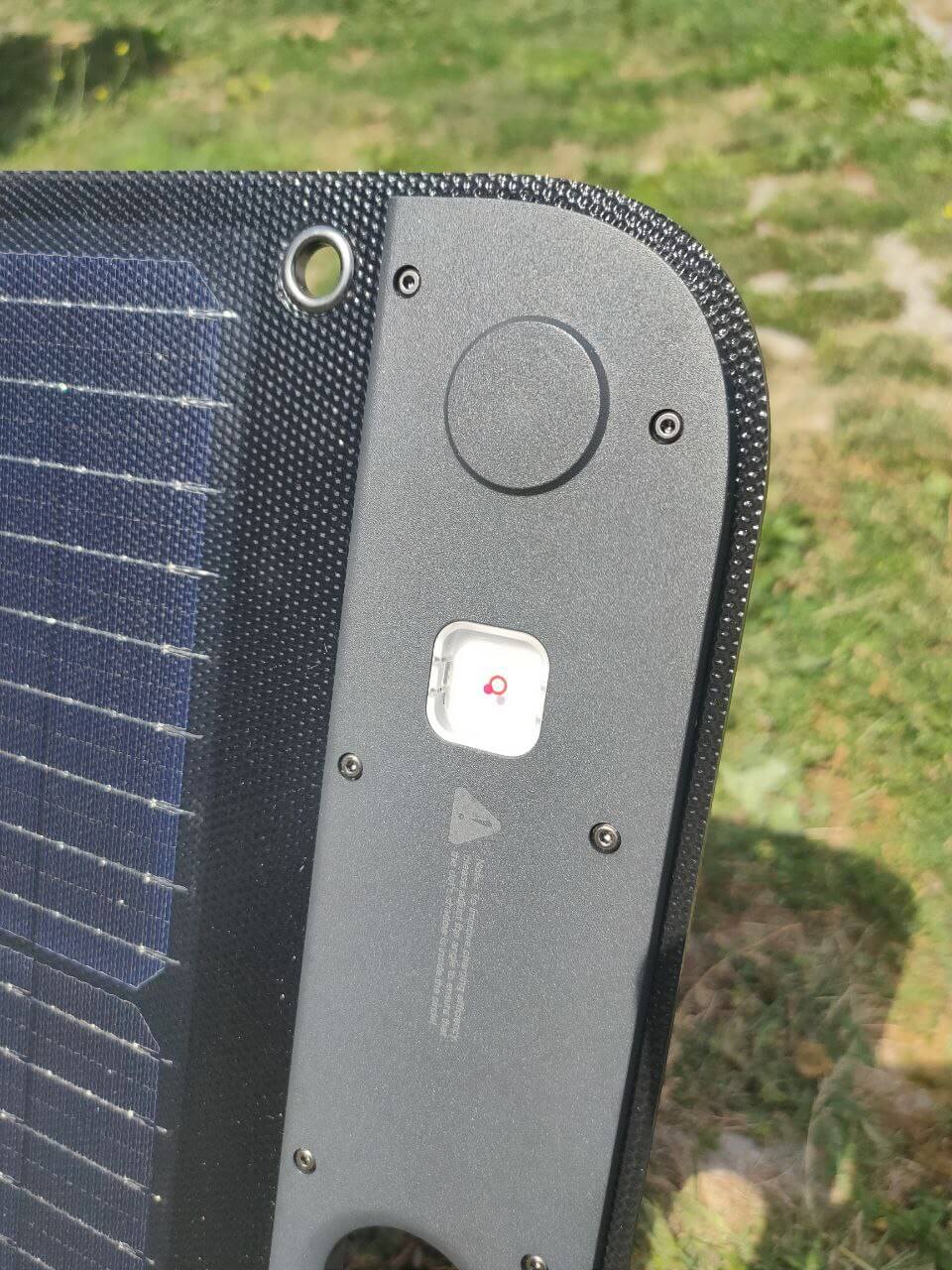 パネルの隅には、中央にドットが付いた透明なプラスチックがあります。ドットの下には、ドットが輝く小さなスペースがあります。中央には、ラベルのある円があります。アイデアはシンプルです。ドットをサークルの中心と一致させて、最良の結果を得ます。これは、太陽が90度の角度にあるときに起こります。このガイドを使用してパネルを正しく角度を付けることにより、パネルからの全体的な出力に10〜20Wを追加できます。