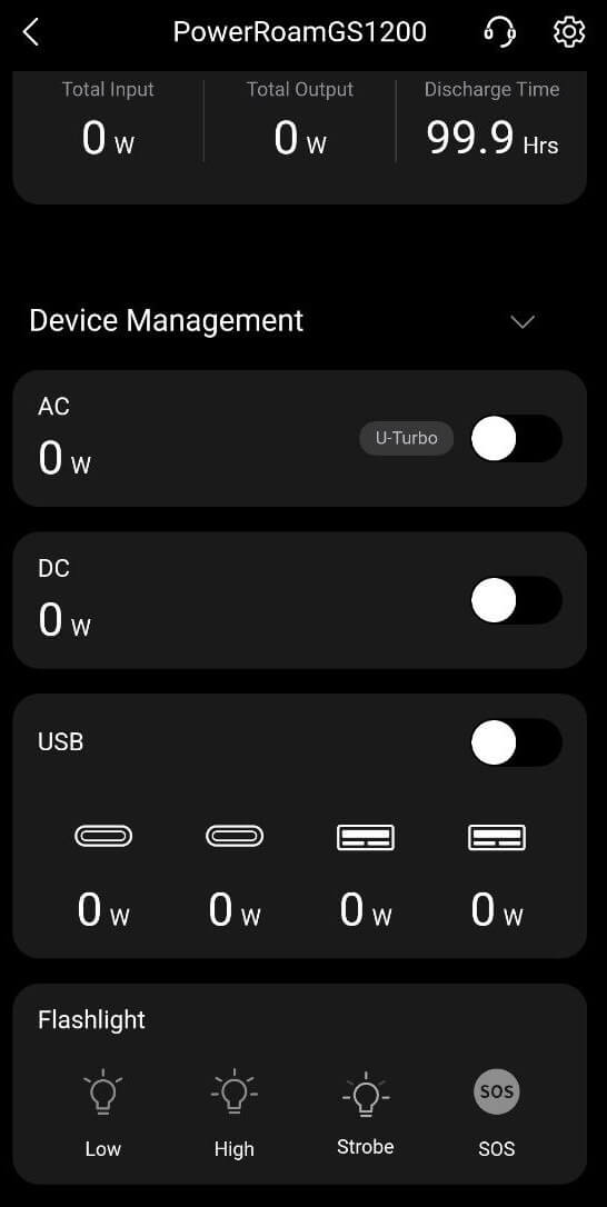 PowerRoamには、懐中電灯機能も装備されています。これは、キャンプエリアやテントを照らすための便利な機能です。 1つのボタンを使用すると、低、高、点滅、SOSモードを含む照明モードを切り替えることができます。