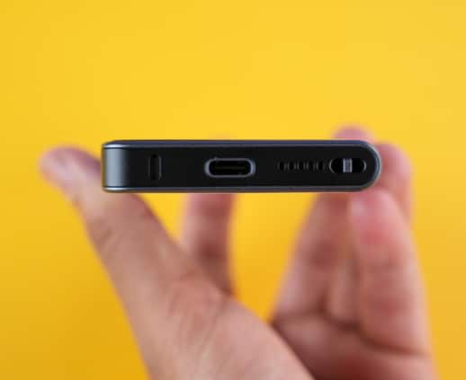 2人のスピーカーも翻訳者の側面を飾っています。翻訳者の反対側には、ボリュームロッカーとナノシムトレイが搭載されています。 USB-C充電ポイントは、ストラップホールとスピーカーとともに下部にあります。