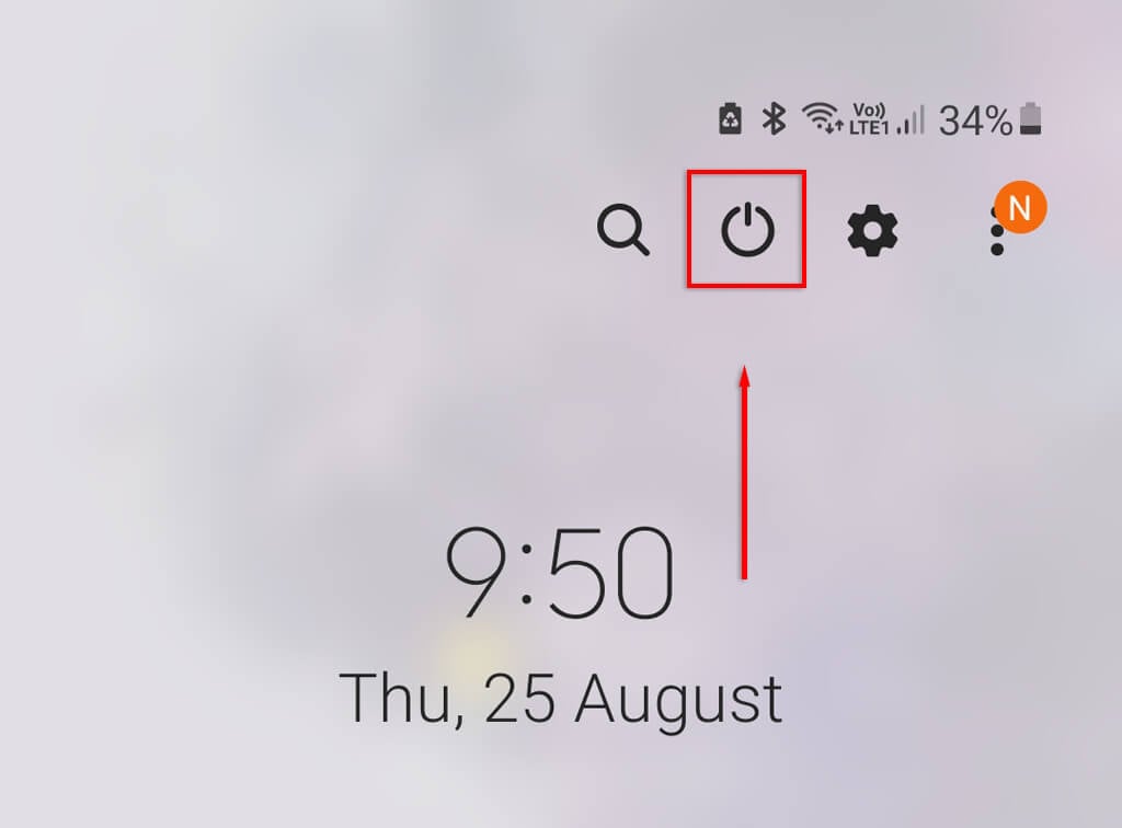 - を選択しますパワーアイコン画面の右上の角に。検索アイコンと設定アイコンの中央にある必要があります。