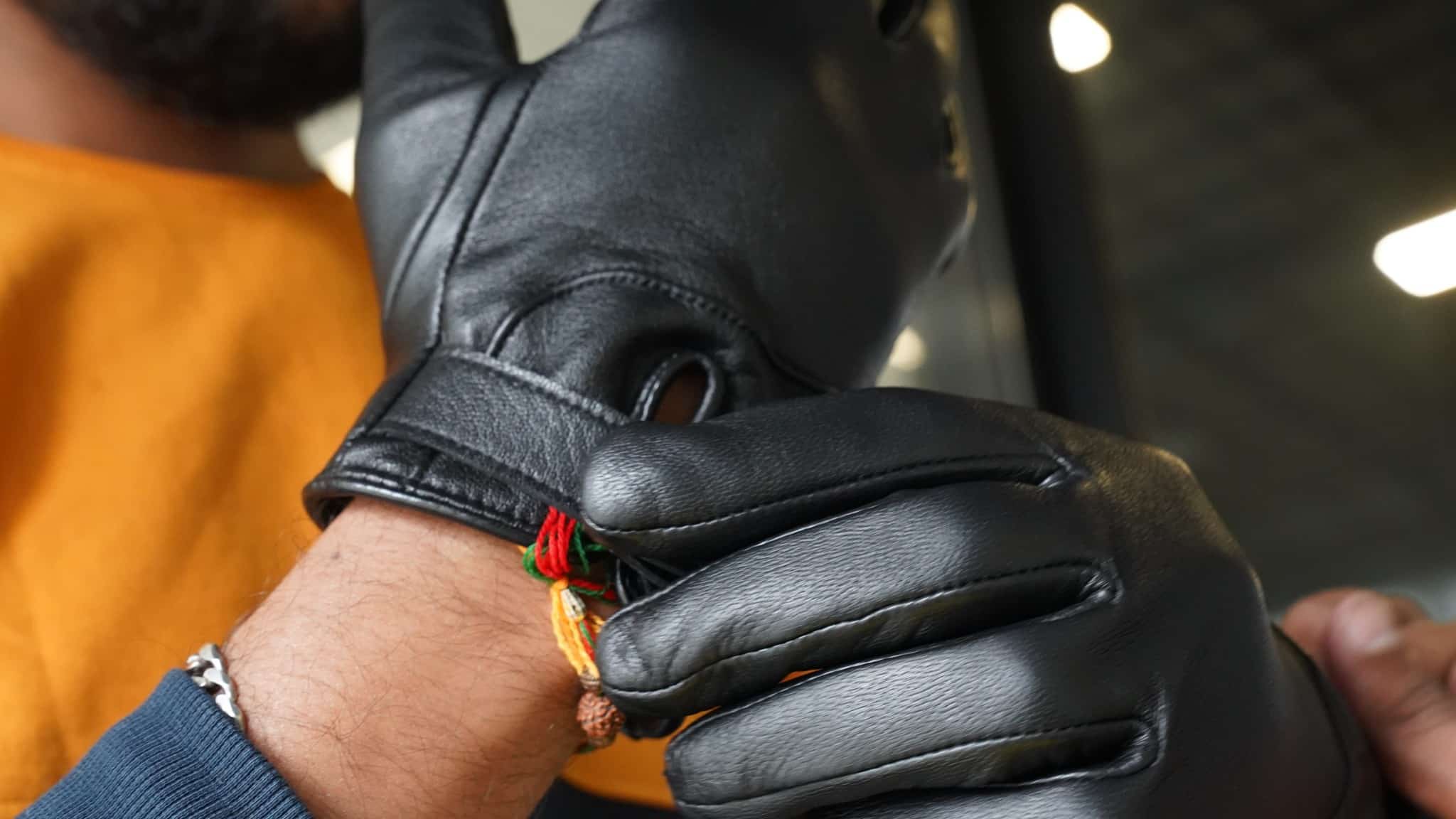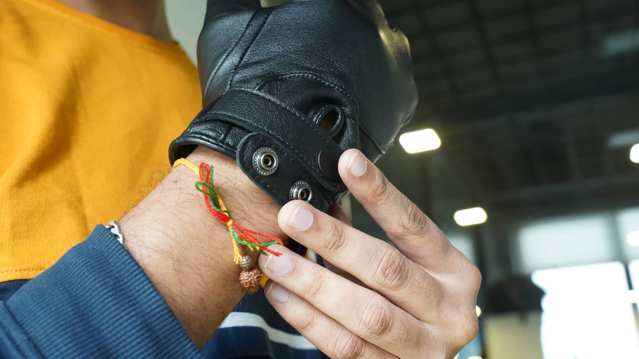 これらの手袋が手から滑り落ちないようにするために、彼らは革のストラップとスナップの閉鎖を収容します。ストラップには、さまざまな手首サイズの2つのスナップファスナーが備わっています。スナップファスナーの顔はマットな黒い仕上げで、グローブと微妙に融合します。