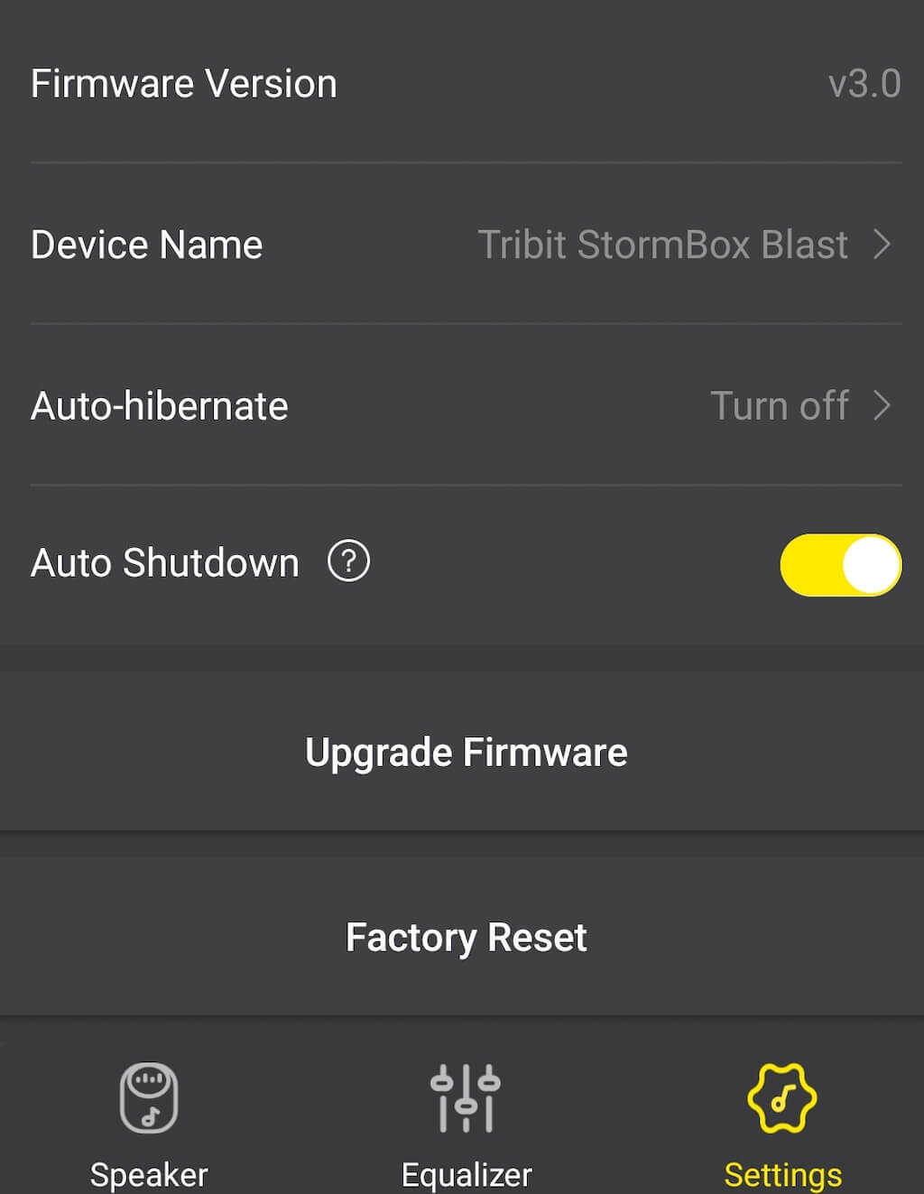 モバイルアプリは、多くの便利な機能を提供します。標準のファームウェアアップデートを実行したり、自動-shutdownと自動hibernate機能を有効または無効にしたり、工場出荷時のリセットを実行したり、EQプリセットのいずれかを使用したり、独自のリセットを作成したりできます。