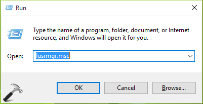 + rタイプlusrmgr.msc[ダイアログ]ボックスを実行するには、[/タップ]をクリックしますわかりましたローカルユーザーとグループを開くには、スナップインします。
