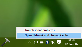 1。タスクバー通知領域のネットワークアイコンを右クリックして選択しますオープンネットワークおよび共有センター。
