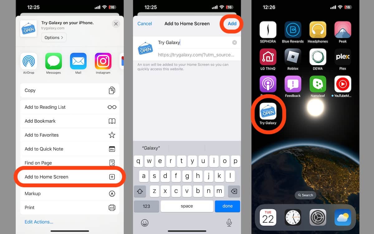 - メニューで、[ホーム画面に追加]オプションをタップします。