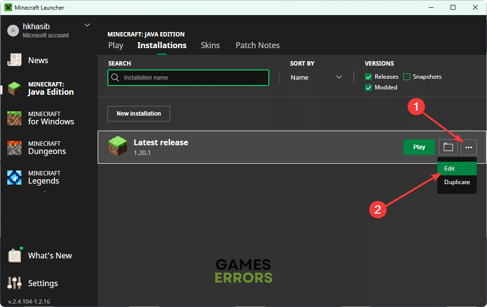 - Minecraftランチャーを開き、問題のあるMinecraftゲームをクリックします。