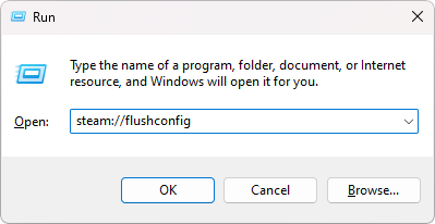4. タイプ "Steam:// flushconfig」と[OK]をクリックします。