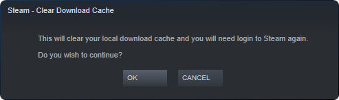 5. Steamによってプロンプトが表示されたときに確認して、ローカルダウンロードキャッシュをクリアします。