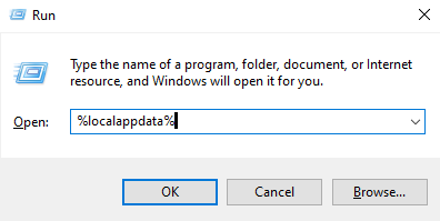 4. タイプ「%localappata%」と[OK]をクリックします。