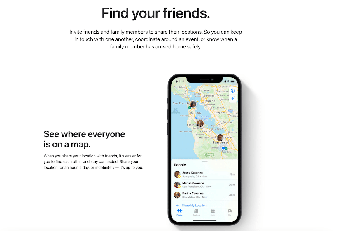 Appleユーザーは、アプリの「私の場所を共有する」ことを可能にして、iPhone、iPad、iPod Touch、またはWatchos 6以降のペアのApple Watchの友人、家族、連絡先をリアルタイムで共有できます。