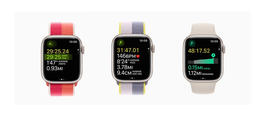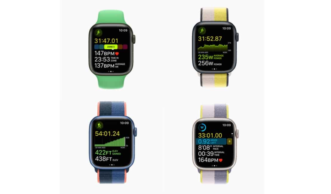- Watchos 9のフィットネス+ワークアウトは、画面上のガイダンスを表示して、加入者が毎分ストロークあたりのストローク(SPM)やサイクリング用の1分あたりの回転(RPM)などのトレーニングを最大限に活用できるようにします。