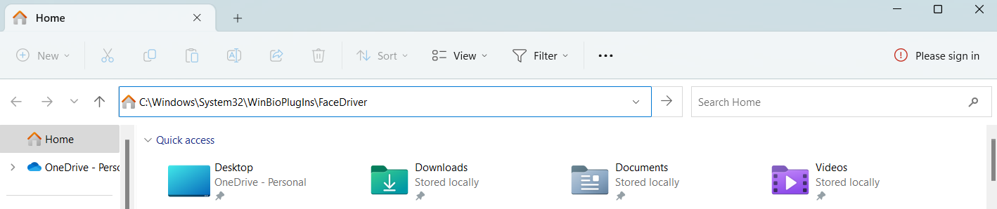 C:WindowsSystem32WinBioPlugInsFaceDriver