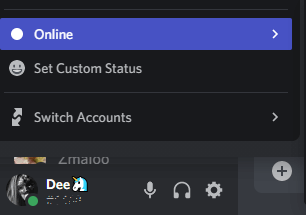- オンライン:緑色の円のアイコンを使用すると、サーバーのメンバーや友人が、自分が不一致で利用可能であることを知ることができます。ステータスをオンラインに設定した場合、人々はあなたが彼らのメッセージを受け取り、読み、反応することを期待しています。