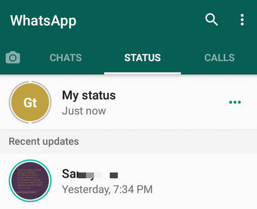 最後の見られたステータスと同様に、ブロックされた人はWhatsAppステータス領域であなたのステータスの更新を見ることができません。あなたのステータスメッセージも彼らから隠されます。