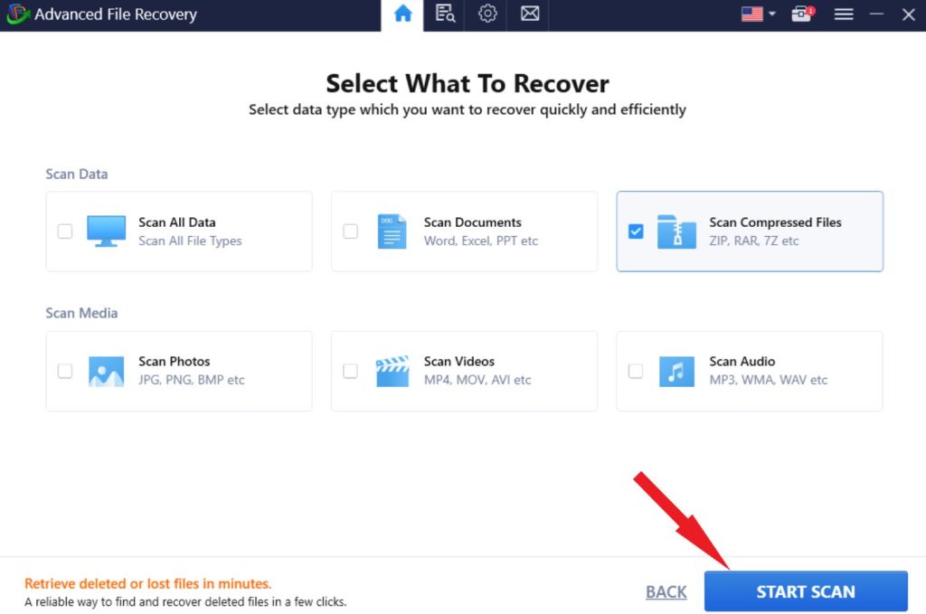 ステップ4:次に、 'のボックスをマークします圧縮ファイルをスキャンしますをクリックしますスキャンを開始しますボタン。