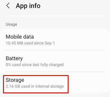 - 次のページで、見つけますキャッシュタップしますクリアその隣。