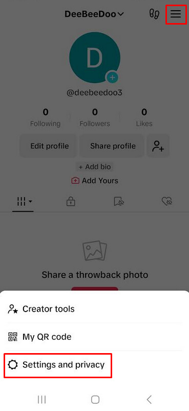 - 3つの水平線をタップして選択します設定とプライバシーメニューから。