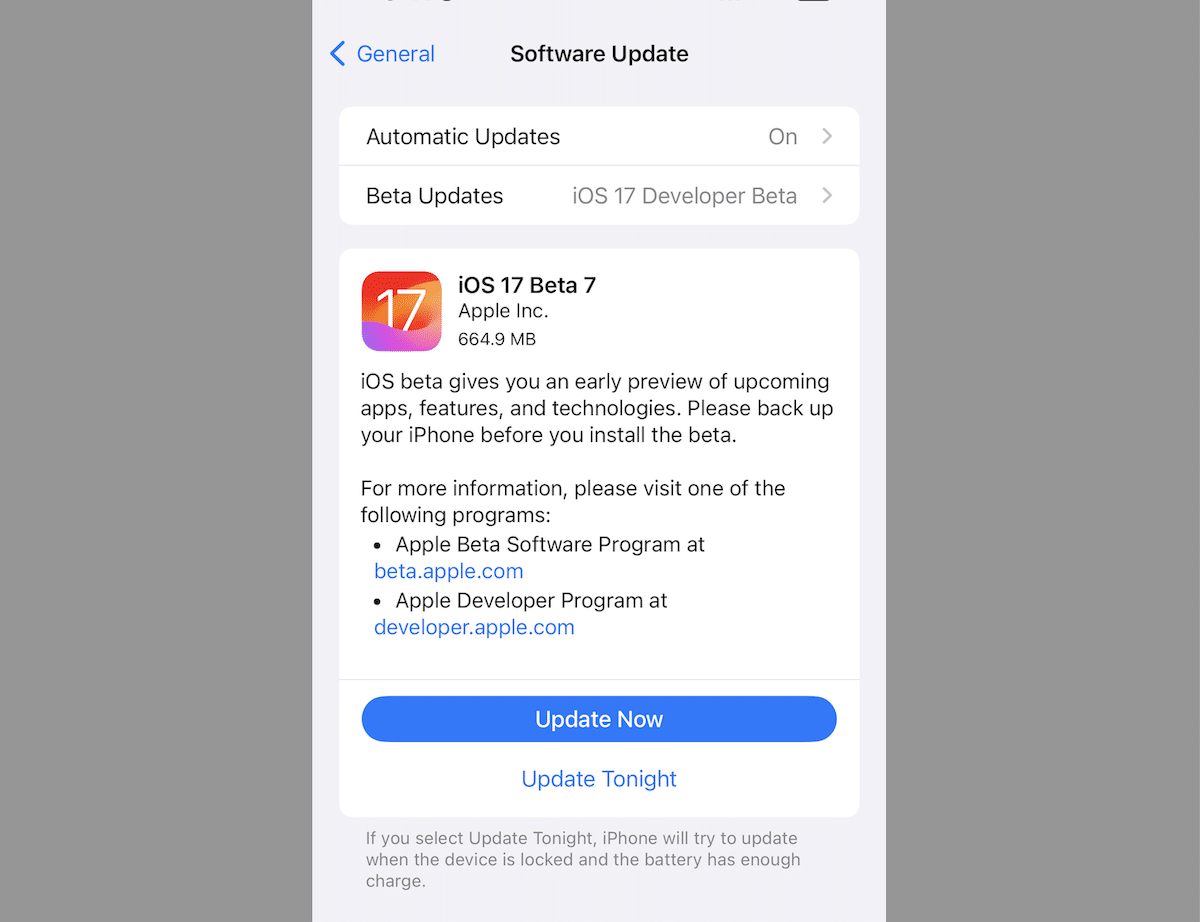 iOS 17ベータ7にいる場合は、以前よりも安定しているため、iOS 17ベータ8またはiOS 17パブリックベータ6に更新する必要があります。