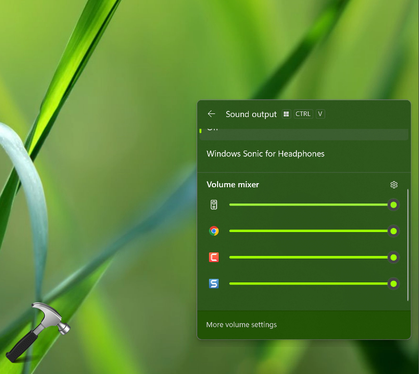 クイックアクションでボリュームミキサーへの新しいアップグレードが追加されました。クイックアクションを開くと、このボリュームミキサーアイコンが表示され、クリックするとボリュームミキサー設定があることがわかります。特定のアプリケーションのボリュームを個別に管理でき、これらのアプリケーションのボリュームを制御することもできます。