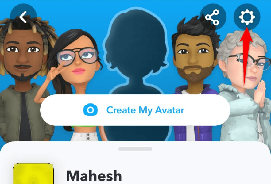 - 左上のコーナーでプロフィールアイコンまたはBitmojiを選択し、設定(ギアアイコン)右上隅の。