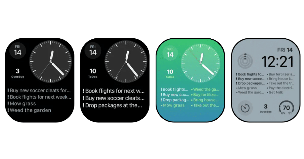 円形の合併症は、その日の期限切れまたは今後のリマインダーの数を示し、タスクの迅速なスナップショットを提供します。さらに、視認性を確保するためにリマインダーテキストを調整することで、背景の色を使用するか、標準の黒い背景に固執するかを選択できます。