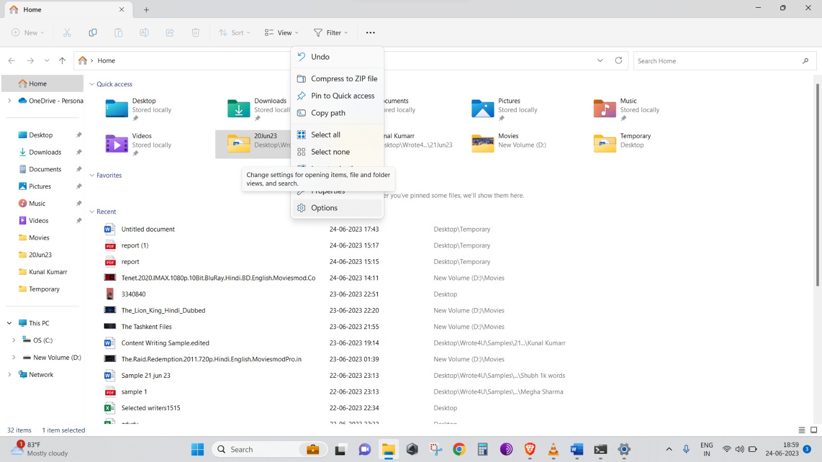 2。[表示]メニューバーに移動し、[オプション]をクリックします。